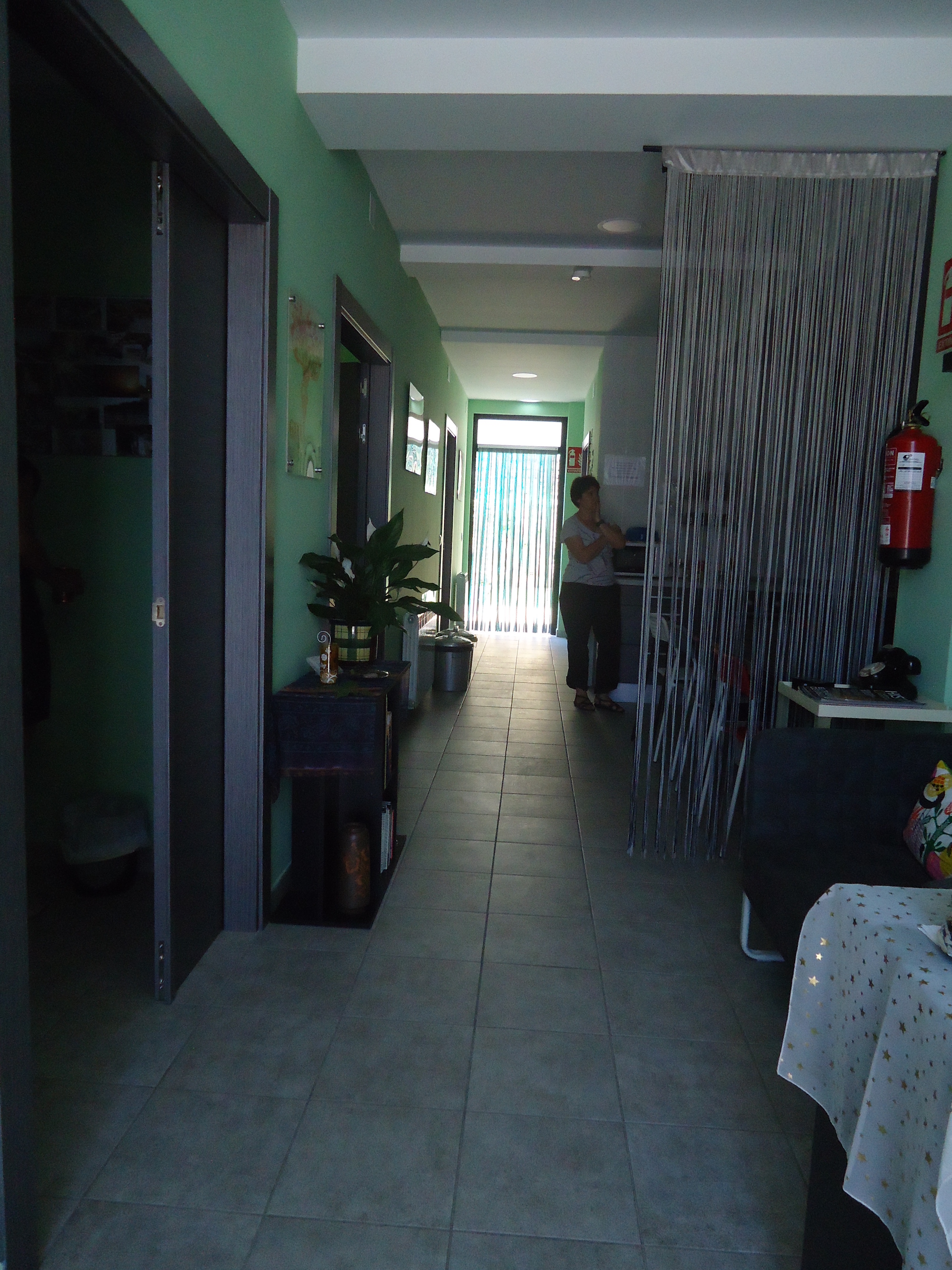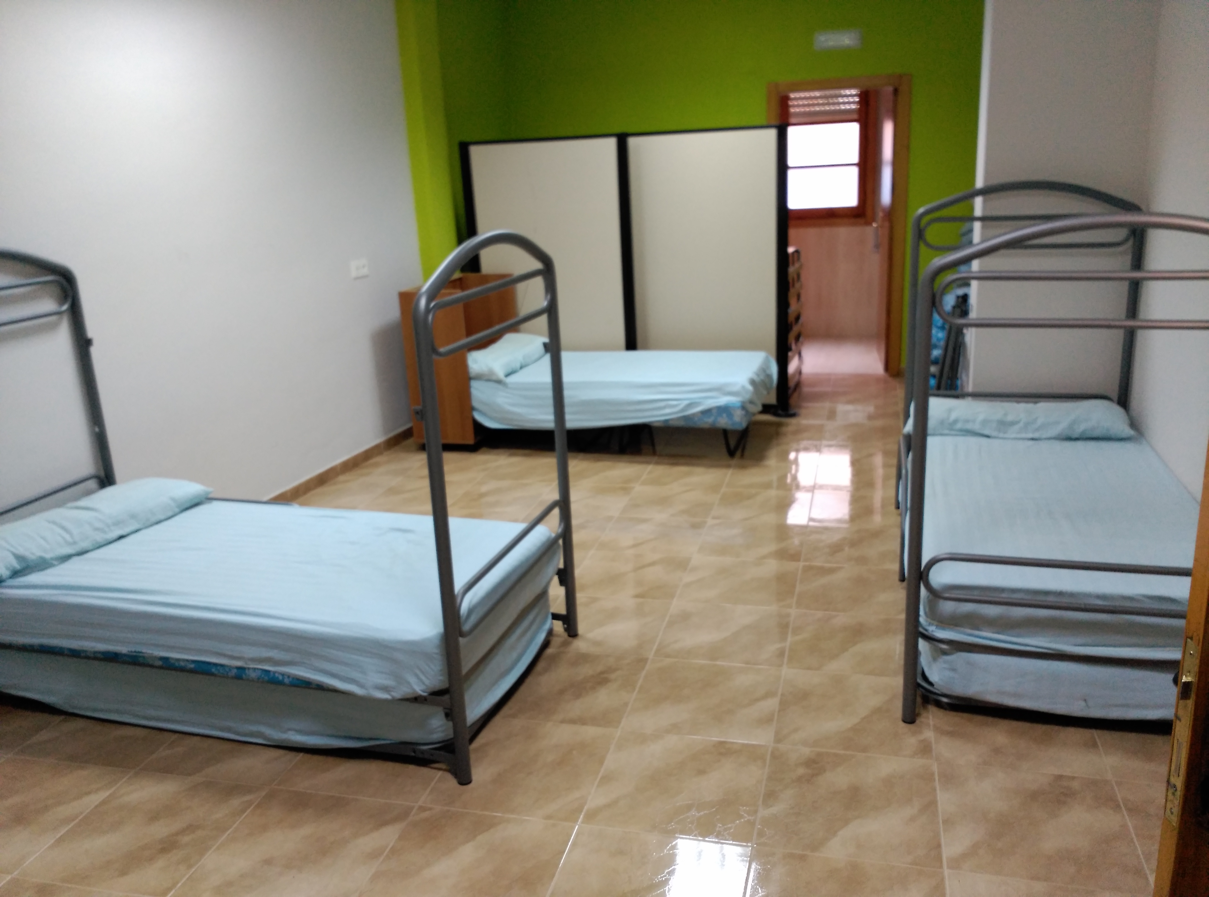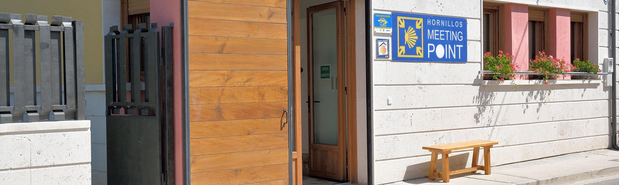 A través de la puerta de 80 cm del propio albergue, que tiene un peldaño de 7 cm.