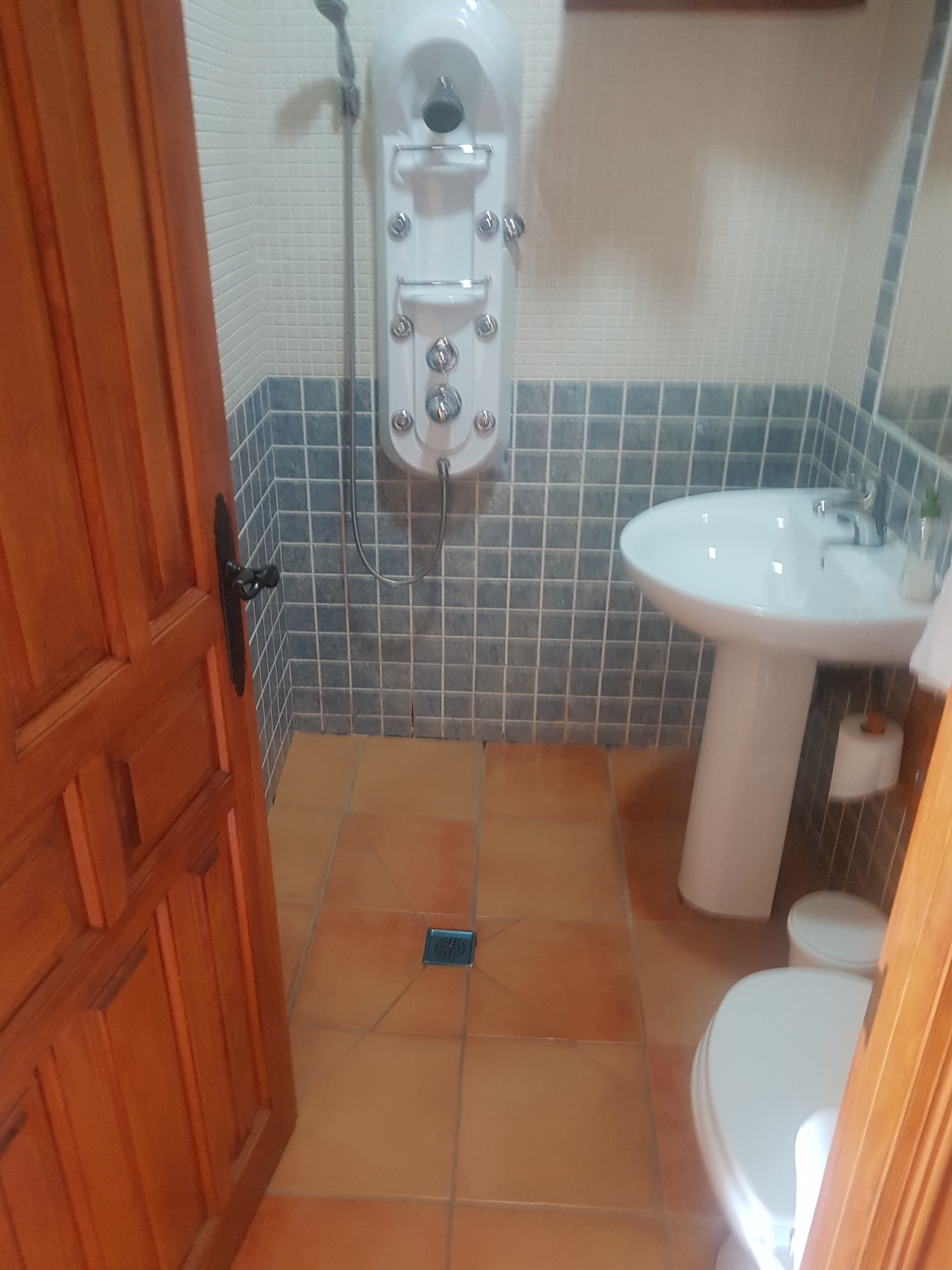 Es el mismo baño. Descrito antes. Dispone de ducha independiente en la habitación. Aunque el baño no es adaptado por completo. Faltan barras de apoyo, lavabo con pedestal, inodoro bajo.