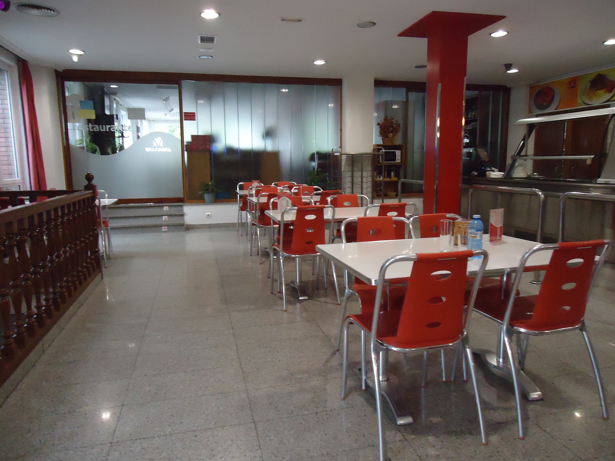 Las mesas permiten la incorporación con silla y el mobiliario es parcialmente accesible.