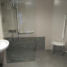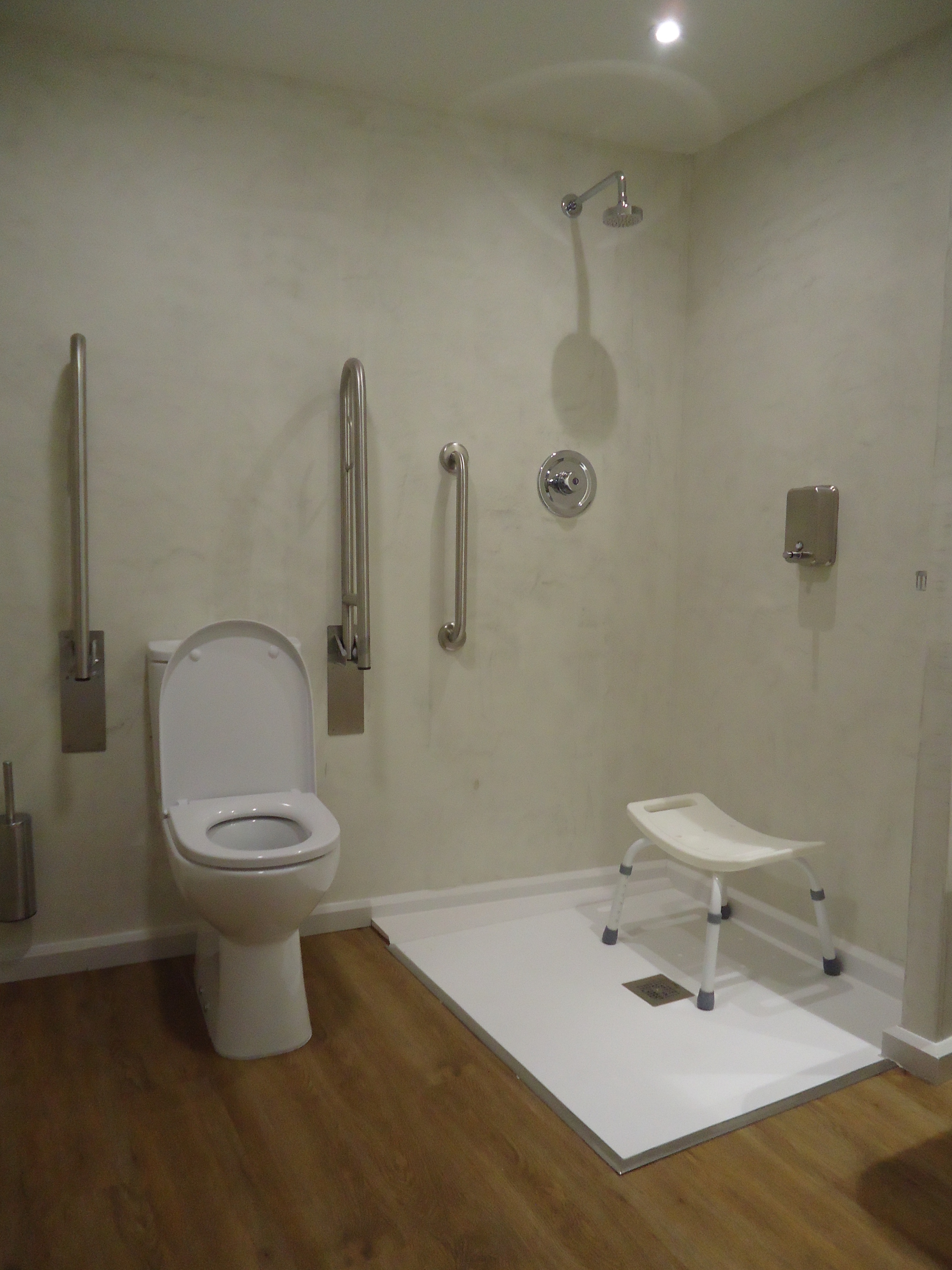 La iluminación es correcta y el suelo antideslizante y contrastado con las paredes.