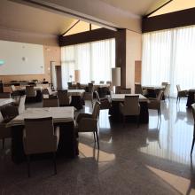 Las mesas permiten la incorporación con silla y el mobiliario es accesible.