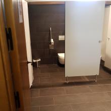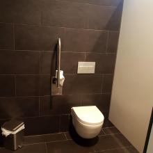 Baños adaptados, falta una barra de apoyo, siendo esta la importante por la zona de transferencia que dispone. Radios de giro adecuados. Sin resaltes.