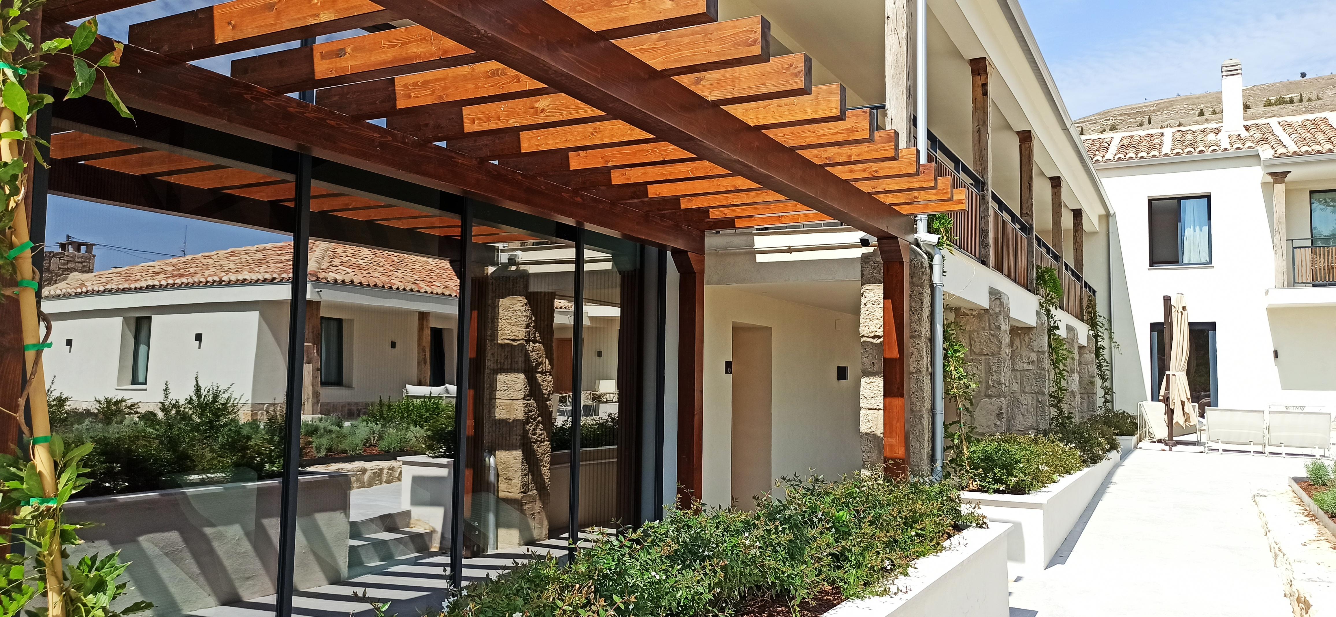 El hotel Quinta San Francisco no sería lo mismo si no estuviera ubicado en el interior de lo que fue un convento del siglo XIV. rehabilitado rodeado de una gran zona de jardines con distintas especies de plantas aromática y arbolado, y donde se ha aprovechado para construir un aljibe, que al mismo tiempo proporciona el agua para el riego automático de la vegetación, una fuente de agua rebosante junto a una amplia zona de terraza, y un pediluvio para que los peregrinos puedan remojar y descansar sus pies cuando llegan al alojamiento.