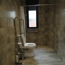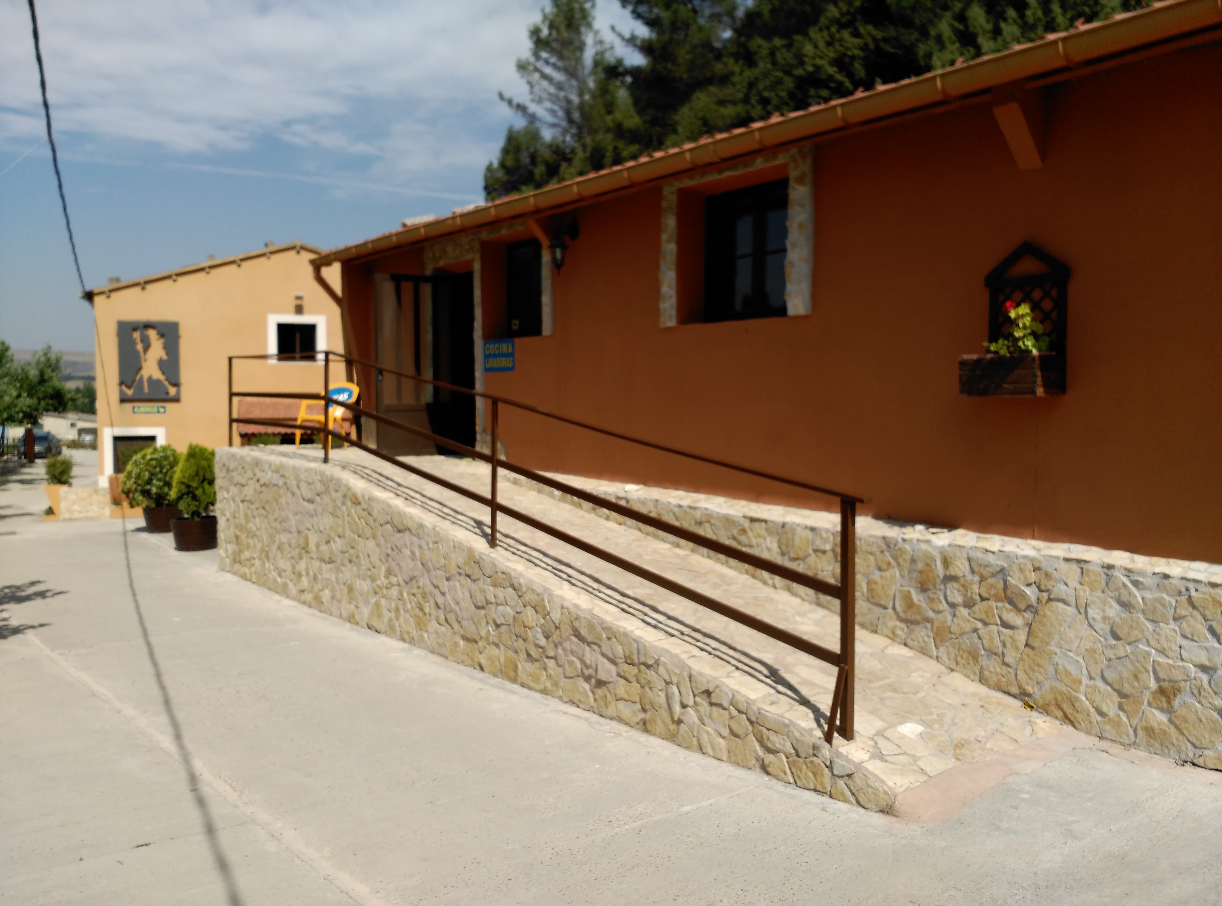 El acceso y los espacios de paso, giro y aproximación son adecuados, en el comedor de menú, el acceso al comedor de peregrinos, cocina y lavaderos se hace muy complicado a través de una rampa mayor del 15 % con pavimento y pasamanos incorrectos.