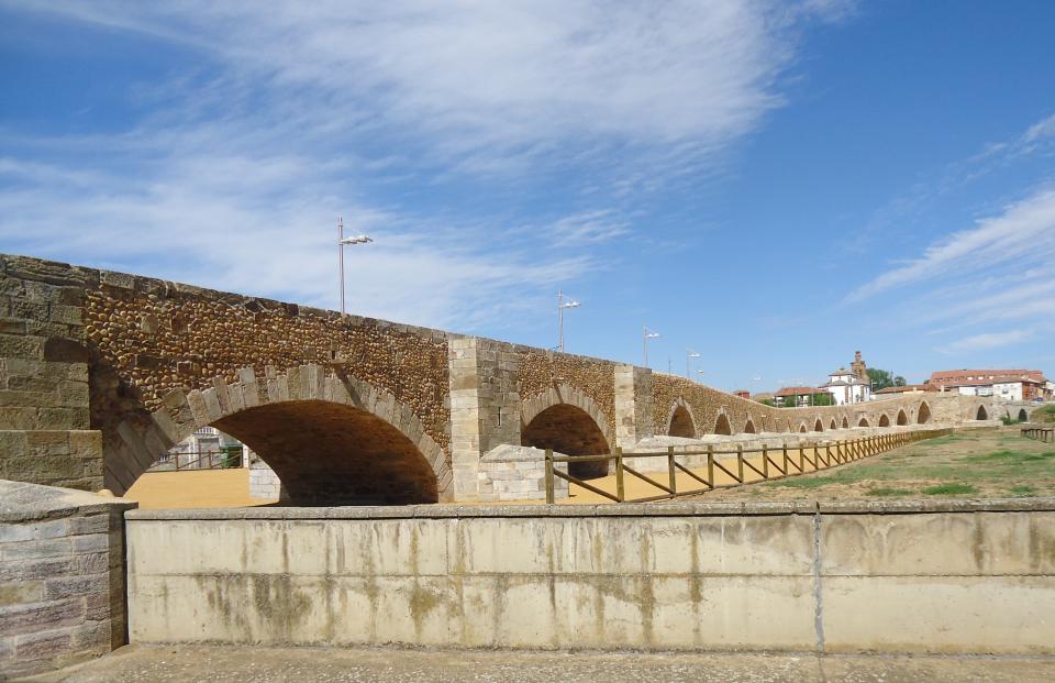 Pero de momento y antes de comentar nuestro final de etapa, volvamos a Villar de Mazarife para de una forma breve analizar la otra variante que también nos llevará a Puente y Hospital de Órbigo. La ruta alternativa entre Villar de Mazarife y Hospital de Órbigo es un poquito más larga que la anterior, pero no mas de 2 km. Al igual que la entrada, la salida de Villar de Mazarife se hace a través de un camino asfaltado que nos acompañará los primeros km del día. Posteriormente pasaremos a una pista de tierra que nos llevará hasta Villavante, el único pueblo que nos encontraremos hasta llegar al final de etapa. Es más, si no necesitas parar, tienes la opción de tomar un camino que deja el pueblo a la derecha. Villavante es una población de 250 habitantes que es conocida sobre todo por el Encuentro de Maestros Campaneros que se celebra todos los años a principios de agosto. La iglesia está dedicada a la Virgen de las Candelas, que tras varias reformas es prácticamente un edificio contemporáneo.Tras Villavante nos queda un paseo de 6 km hasta el final de etapa. La primera parte se hace por un camino de tierra, pero los últimos km son bastante desagradables ya que nos vamos a cruzar con la autopista, con la N-120...Puente y Hospital de Órbigo en realidad forman una localidad en torno al río Órbigo y a su famoso puente. Puente de Órbigo cuenta con unos 200 habitantes y Hospital con unos 1000.