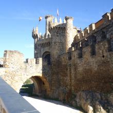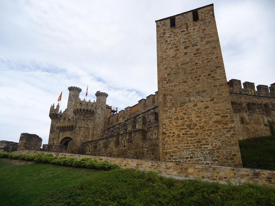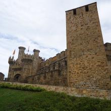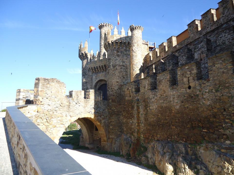 Los últimos km de la etapa ya transcurren por los barrios periféricos de Ponferrada. Las dos opciones de entrada, nos llevan al que sin duda es el edificio más emblemático de la ciudad, el Castillo Templario.Aunque ya hay datados asentamientos desde época prerromana, el nacimiento propiamente dicho de Ponferrada se da en la Edad Media. En el siglo XI se construye un puente para que los peregrinos puedan cruzar el Río Sil en su ruta hacia Compostela. A la vera del puente se levanta una iglesia y en torno a ella irán surgiendo las casas que formarán el primer núcleo de población que derivará en Ponferrada. El nombre viene dado de ese puente que estaba reforzado con hierro, Pons Ferrata. En el siglo XII la villa pasa a los templarios, que harán de ella su centro de operaciones para la protección de los peregrinos a Santiago. En la parte alta de la localidad construirán una fortaleza, que tras muchas reformas nos dará el actual castillo. Además la ciudad inicia su amurallamiento.