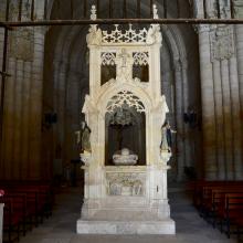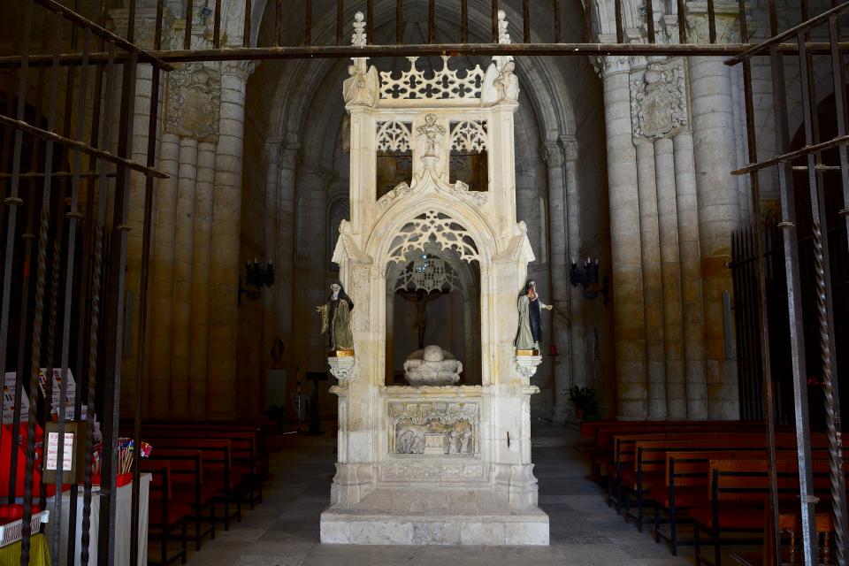 Pero quizá lo más representativo de la iglesia sea su decoración. En primer lugar podemos ver el sepulcro de San Juan de Ortega (aunque los restos están depositados en la cripta), formado por una estatua de alabastro del santo y cubierta por un baldaquino de estilo Gótico Isabelino.