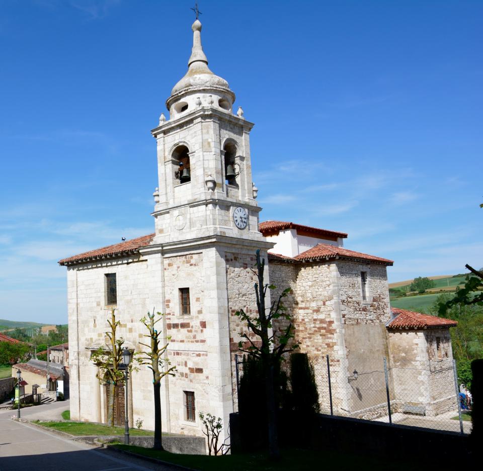 El siguiente pueblo en aparecer será Espinosa del Camino a menos de 2 Km de Villambistia, siempre con la N-120 a nuestro lado. Municipio que no supera los 40 habitantes, pero que también cuenta con su iglesia y su albergue. La Iglesia es la de la Asunción del siglo XVI, de la que destacaríamos su portada de alabastro y una escultura policromada de San Indalecio.