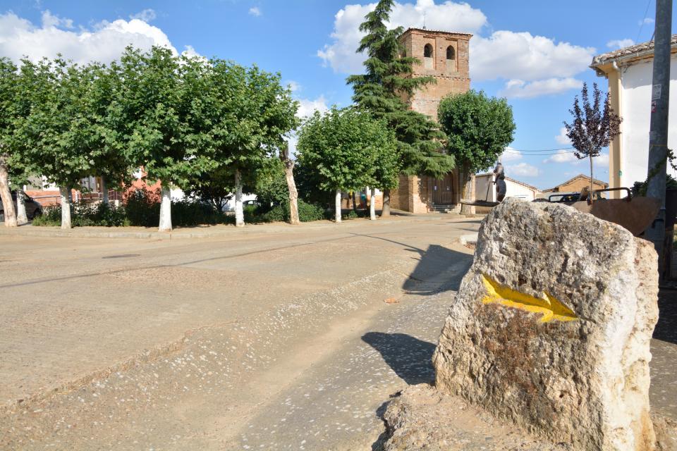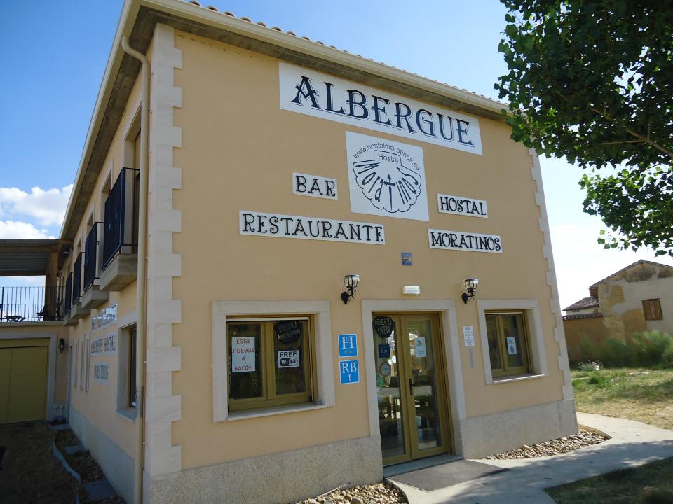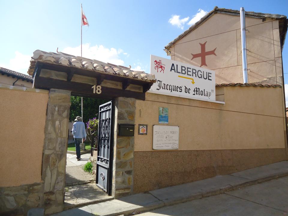 Antiguamente la localidad tuvo dos iglesias, la desaparecida de San Lorenzo y la que queda en pie de San Pedro. De esta destacaremos un cristo crucificado del Siglo XIV y el retablo del XVII. Terradillos cuenta con dos buenos albergues, que evidentemente hacen referencia al Temple. Uno de ellos (el albergue Jacques de Molay) lleva el nombre del último gran maestre de la orden templaria, que murió en la hoguera después de haber confesado bajo tortura una serie de delitos, que trajo como consecuencia la disolución de la orden y la confiscación de sus innumerables propiedades.Ya nos queda muy poquito para salir de la provincia de Palencia y entrar en León. Algo más de 3 Km separan Terradillos de los Templarios de nuestro siguiente destino, Moratinos. Moratinos es un pequeño pueblecito que no llega a los 30 habitantes. Ya aparece vinculado al Camino desde mediados del siglo X, donde se nombra la calle principal como Calle de los Franceses debido al gran número de peregrinos que venían de este país. Lo que más llama la atención de la localidad es la Iglesia de Santo Tomás de Aquino del siglo XVI, en cuyo interior destacaremos la pila bautismal, una talla de San Roque y sobre todo una imagen de la Virgen con el niño.También Moratinos nos ofrece la posibilidad de hacer noche. Cuenta con un albergue y un hostal, pero ninguno de los dos es accesible.